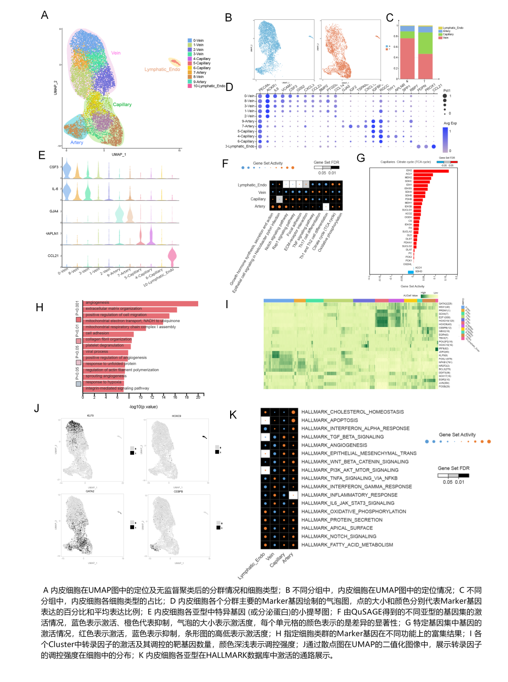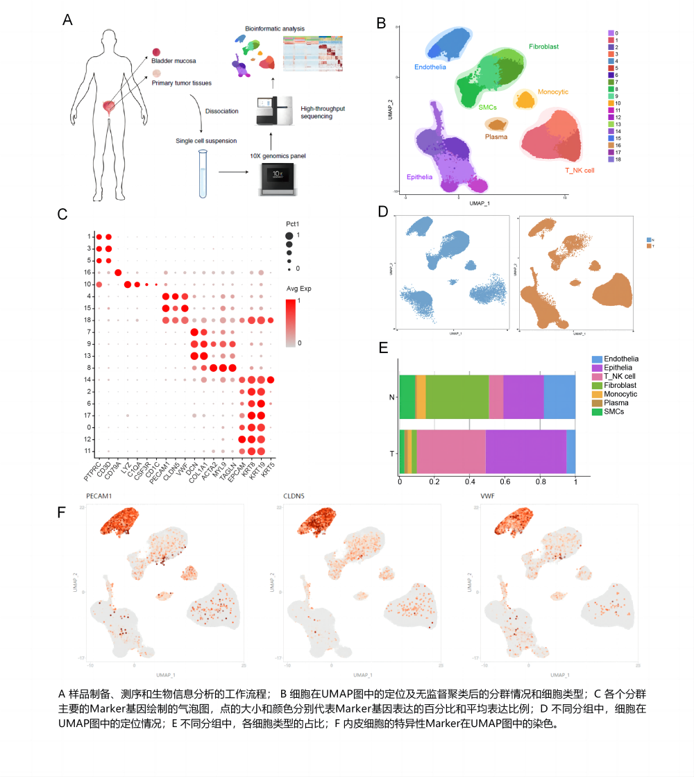 展示細胞降維聚類、細胞類群標識基因分析、細胞類群標識基因功能和通路分析、細胞類群在不同樣本分組下的豐度變化以及細胞類群在各個樣本細胞中占比的結果。