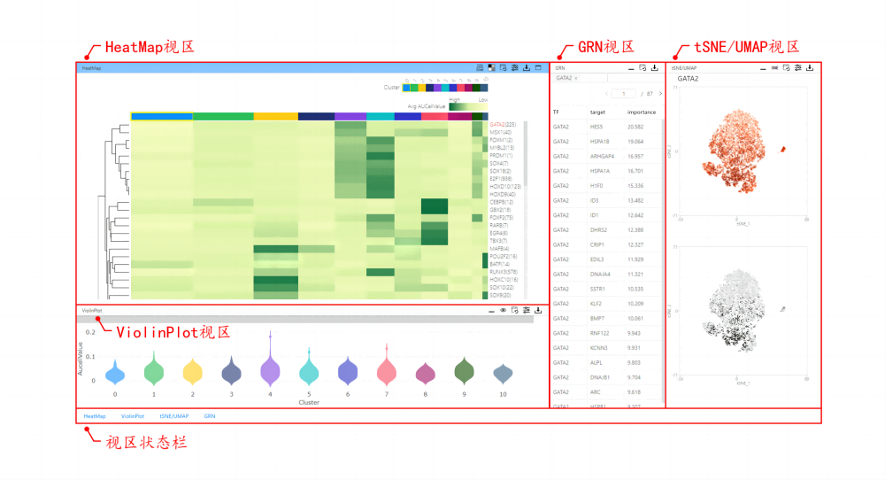 SCENIC工具的主要內容是轉錄因子調控網絡分析的可視化展示與交互式解讀。